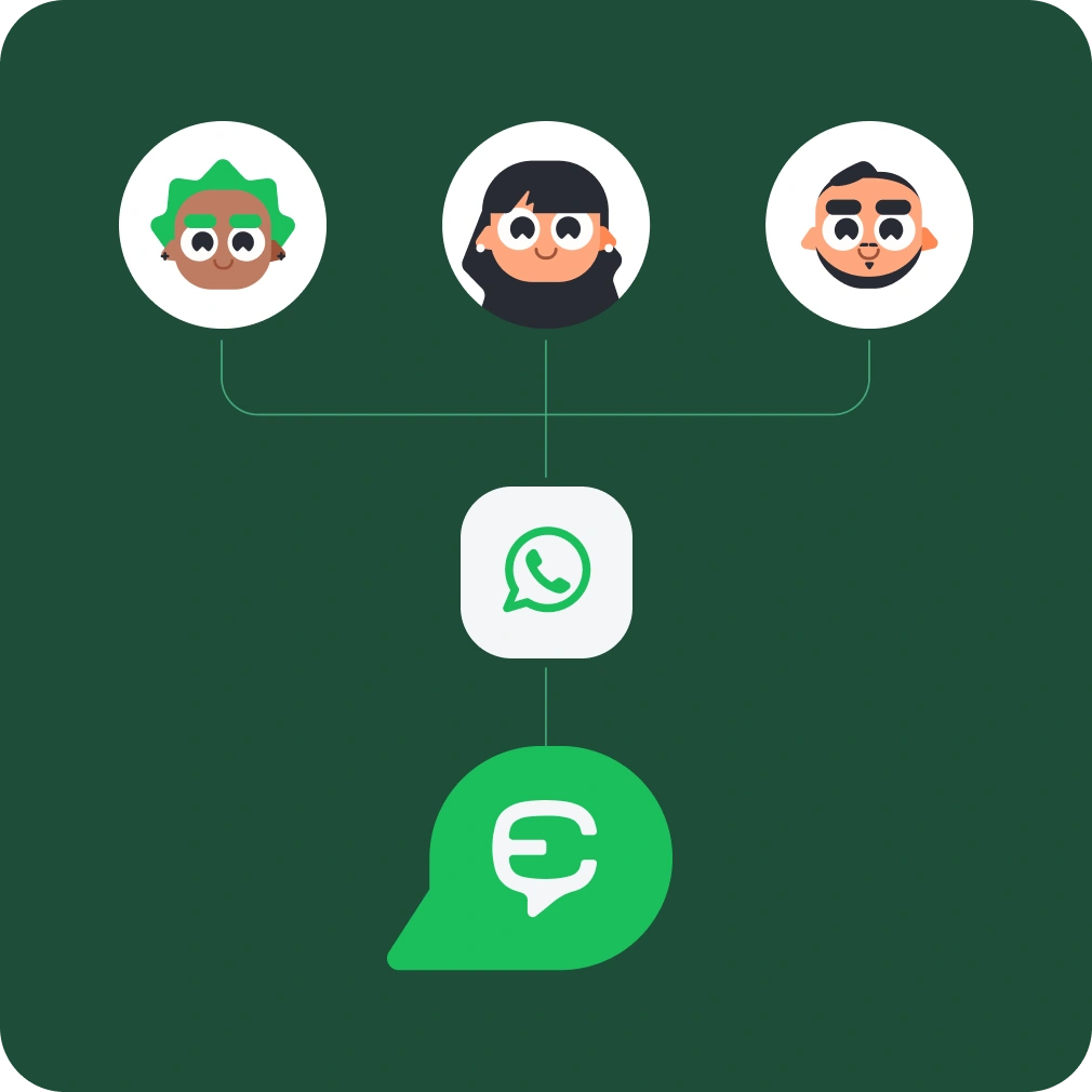 Vários atendentes no mesmo número, sem depender de chip, aparelho ou WhatsApp Web aberto.